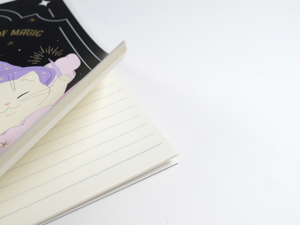 The M&G Magic is Everywhere notebook features smooth, lined paper perfect for everyday writing. Its soft cover showcases charming artwork with golden accents, and a glued binding keeps it lightweight and easy to carry.
