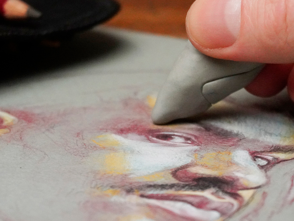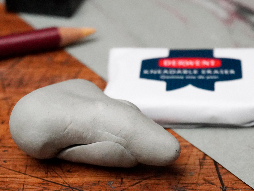 The Kneadable Putty Eraser is particularly useful for highlighting, stippling and ghosting. Simply mould the eraser in your fingers until soft, pull into a point and carefully remove layers of graphite or colour pigment as required.