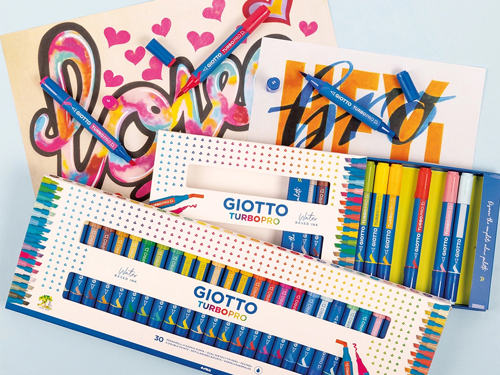 Bring your ideas to life with the vibrant Giotto Turbo Pro double-sided markers! The versatile, soft, brush-shaped nib is durable and allows you to create a variety of flexible strokes, from thin to thick. The broad chisel nib on the other end is perfect for quick visuals and filling in larger areas, offering endless expressive combinations.