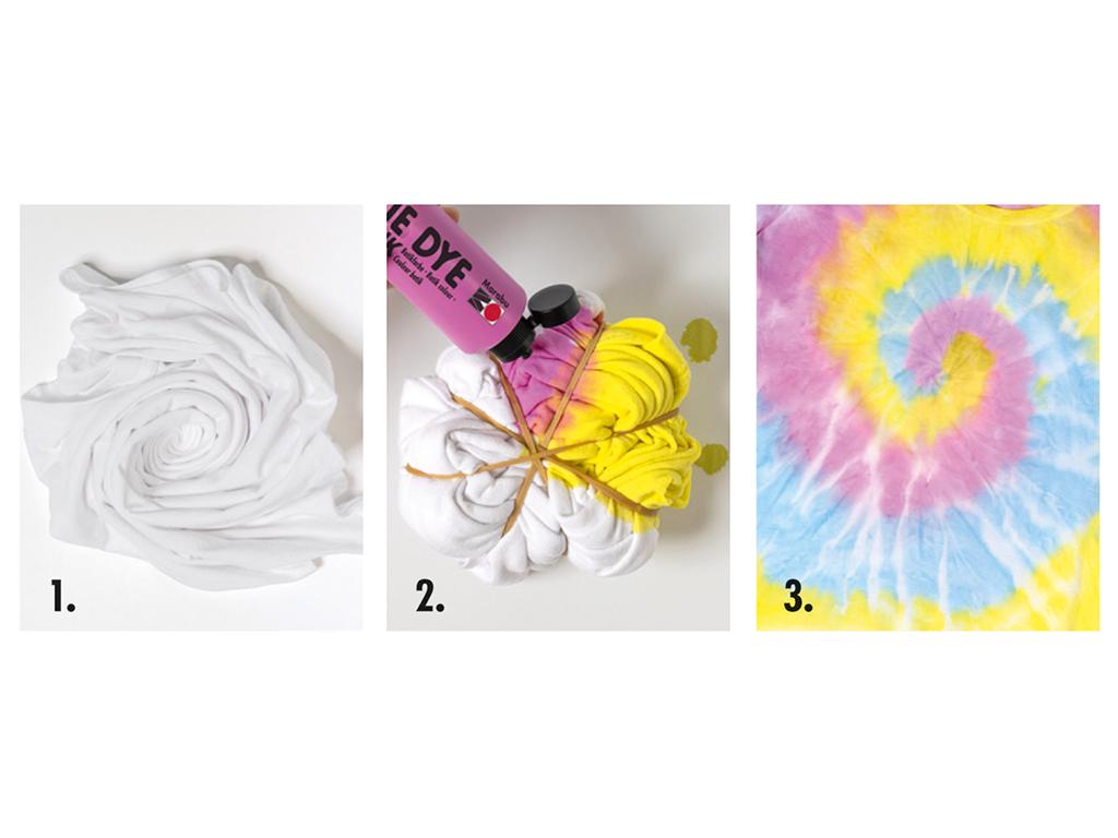 3. Sulenkite, susukite arba suglamžykite audinį ir sutvirtinkite jį gumytėmis.
