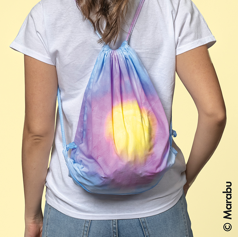 Pamirškite nuobodžius marškinėlius! Su vandens pagrindo ir paruoštais naudoti dažais „Marabu Tie Dye“ lengvai sukursite unikalius raštus ant marškinėlių, džemperių su gobtuvu, šortų ir kitų drabužių. Lengvai nudažysite ryškius, įvairiaspalvius raštus! Tinka šviesių spalvų tekstilei, kurioje yra ne daugiau kaip 20 proc. sintetinių pluoštų. Užtvirtinus dažus, išdžiūvusį audinį galima skalbti iki 40°C temperatūroje.