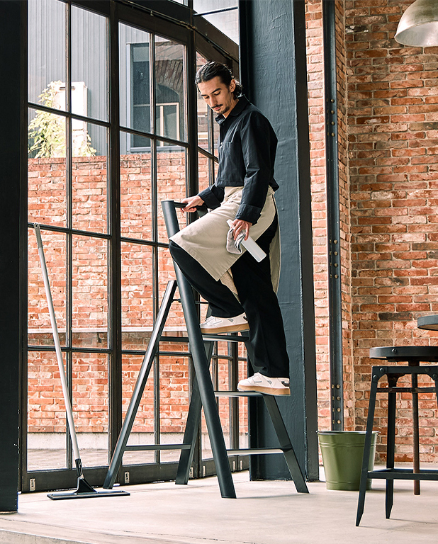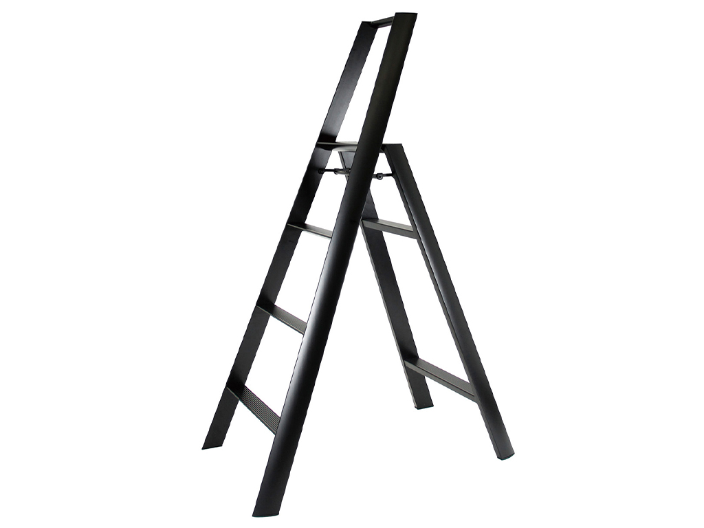 Lengvos ir patvarios keturių pakopų aliuminio kopėčios, ne tik reikalingas buityje daiktas, bet ir modernios išvaizdos dizaino elementas. Trikampis kojelių ir pakopų pjūvis kopėčioms suteikia stilingumo, jos yra siauresnėsm nei įprastos, todėl jas yra patogu sandėliuoti. Aptakios ir lygios formos, paviršiaus ir kampų, paslėptais tvirtinimo elementais. Yra apdovanotos “Best of the Best” Red Dot Award.