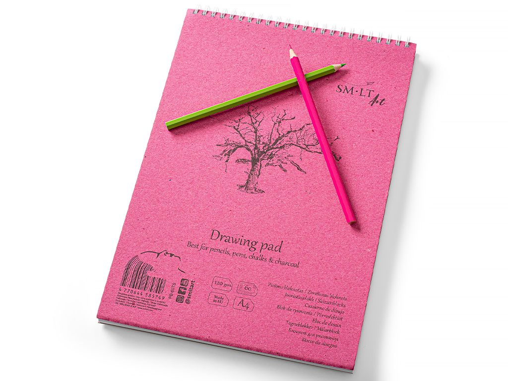 Aukštos kokybės „Smlt Art Authentic“ serijos balto piešimo popieriaus bloknotas. Paviršius švariai nutrinamas ir tinka visų rūšių piešimui. Geriausiai tinka sausoms priemonėms, tokioms kaip pieštukai, rašikliai, kreidelės ir anglis. Bloknotas yra su kartoniniu viršeliu, kieta nugarėle, mikroperforuotais lapais, viršuje įrištas spirale. Vidinis popierius yra be rūgščių, neutralaus pH, sertifikuotas FSC bei ES ekologiniu ženklu.