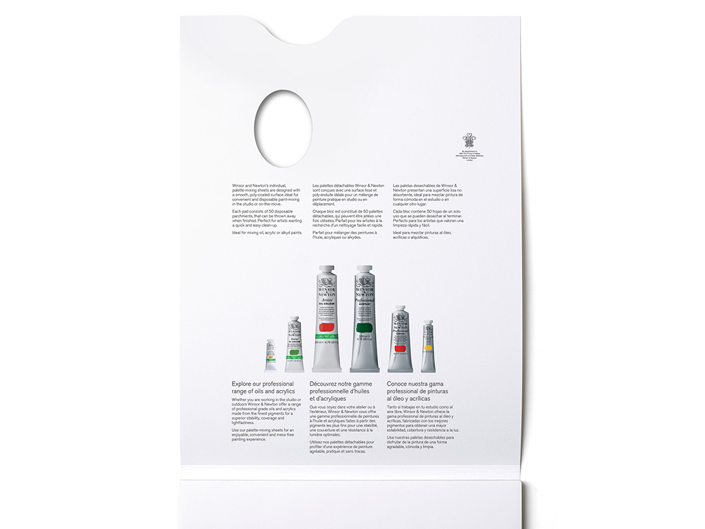 Ērti un gludi Winsor&Newton paletes papīra loksnes ar pretizsūces pārklājumu ir ideāli piemērotas eļļas un akrila krāsu jaukšanai. Katrā blokā ir 50 vienreizlietojamas loksnes, kuras var viegli noplēst un pēc lietošanas izmest. Ideāli māksliniekiem, kuri vēlas ātru un vienkāršu uzkopšanu.