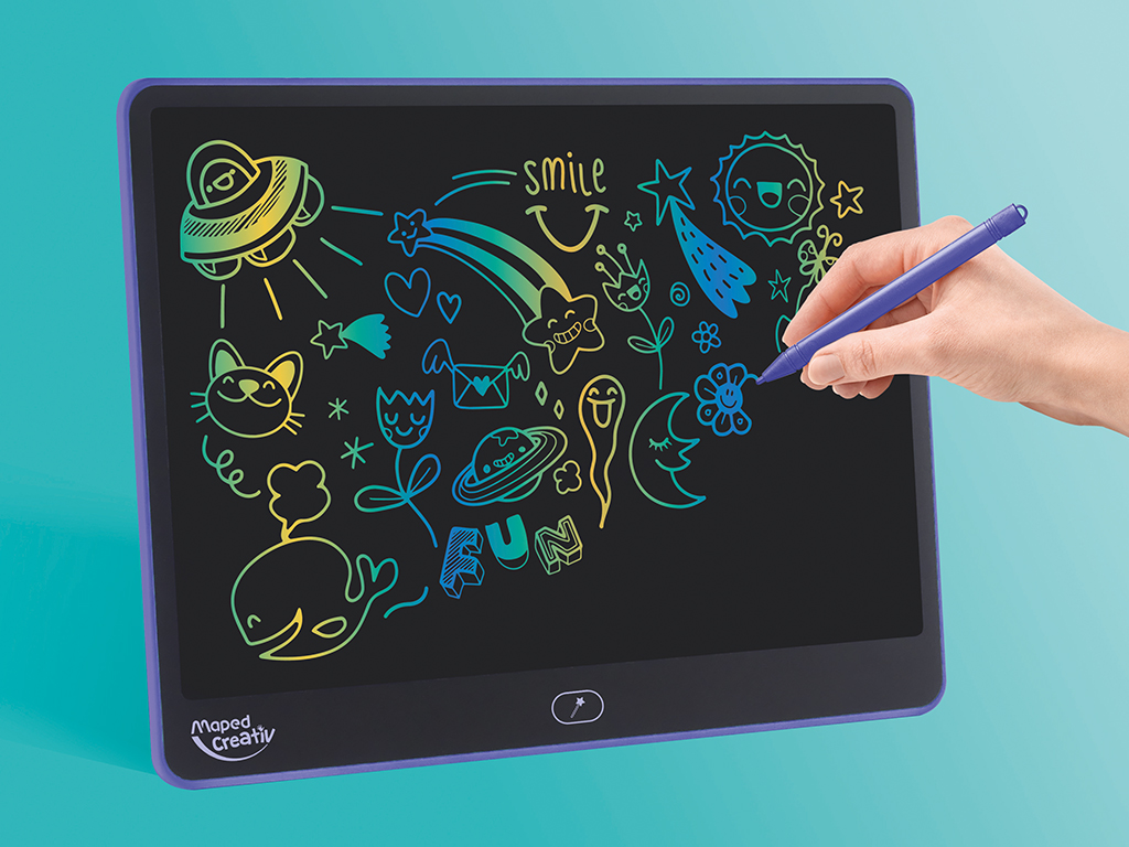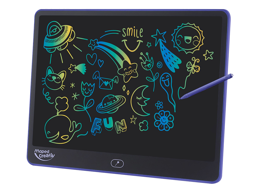 Maped Creativ Magical Tablet LCD joonistustahvel võimaldab lastel lõputult joonistada, kirjutada või kritseldada – ilma paberita, ilma pliiatsita ja ilma piiranguteta! Suurel LCD-ekraanil ilmub iga joon kohe kolme värviga, luues maagilise efekti. Kaasasolev puutepliiats võimaldab lastel vabalt loovust väljendada ning ühe nupu vajutusega saab töö tahvlilt kustutada. Tagaküljel olev lukustussüsteem hoiab ära kogemata kustutamise, muutes kasutamise veelgi mugavamaks.