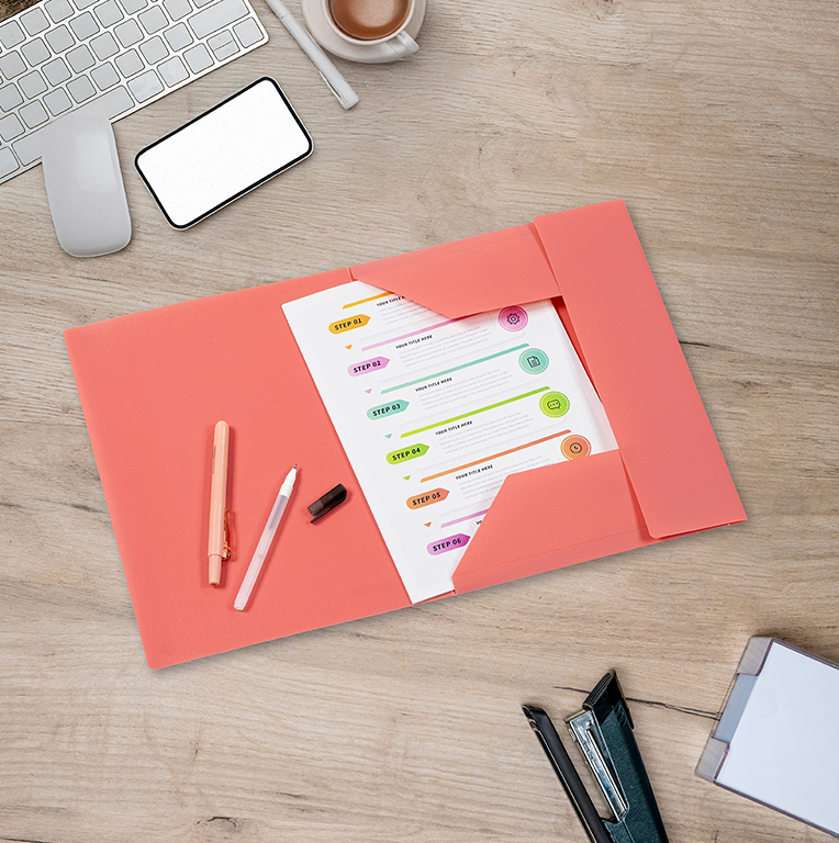 Minimalistliku disaini ja trendikate värvidega vastupidavad Viquel Business kolme klapiga mapid on valmistatud tugevast polüpropüleenist. Mitmevärviline kummiriba ja kirjutatav silt hõlpsaks tuvastamiseks – stiilne täiendus kontorisse ja dokumentide korrastamiseks.